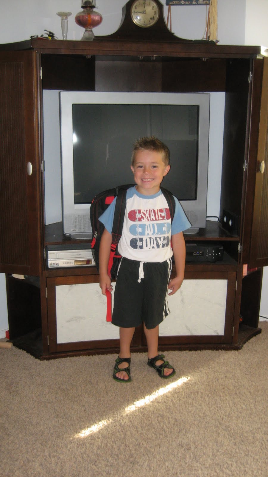 The Monkey's first day of Kindergarten. Well, technically it's the first day of the "Kindergarten jump start camp" since school doesn't officially start until Sept. 8.